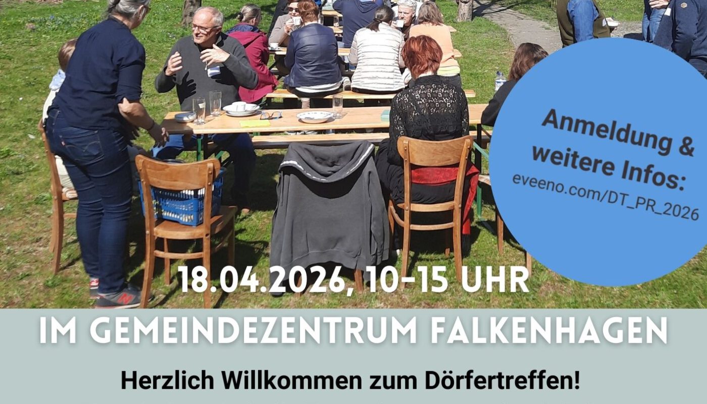 Die Anmeldung für das Prignitzer Dörfertreffen 2026 am 18.04.2026, 10-15 Uhr, in Falkenhagen ist eröffnet!