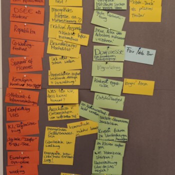 So trafen u.a. „Alt“ und Jung“ beim Thema Nachhaltigkeit „aufeinander“, was gar nicht so schlimm war, wie man denken möge. Die Prignitzer fanden sich mit dem Ergebnis zusammen auch in der Prignitz ein Dörfernetzwerk aufzubauen. Dazu stellten sich eine ganze Reihe von Organisationen und Initiativen vor und in der Mittagspause war Platz für viele Einzel- und Gruppengesprächen. Alle waren am Ende der Meinung, dass es ein rundum gelungener Tag war, auch wenn es allen wieder einen Tag vom kostbaren Wochenende gekostet hat.